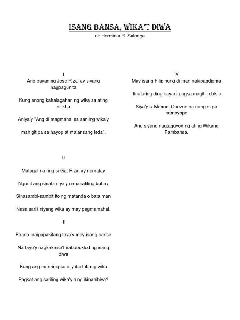Tula tungkol sa pagsakop ng hapon sa pilipinas. Lupang Mahal Perlas ng Silangan. Pilipinas babangon kang muli sa kahirapan. Reaksyon ng Guryon.